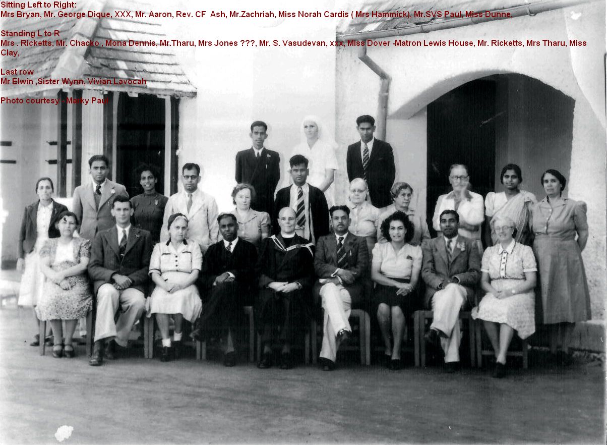 Mrs Bryan, Mr. George Dique, XXX, Mr. Aaron, Rev. CF Ash, Mr.Zachariah, Miss Norah Cardis ( Mrs Hammick), Mr.SVS Paul, Mrs Macateer,